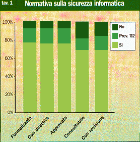 Regole interne per 9 banche su 10 Dall'indagine emerge un quadro di diffusa formalizzazione delle politiche aziendali in materia di governo del rischio informatico: il 76% delle aziende è dotato di un'apposita normativa interna; un ulteriore 16% sta provvedendo in tal senso. Costituzione di unità formalmente responsabili, alle dipendenze della direzione (della banca o della capogruppo) nel 43% delle banche e del settore sistemi informativi nel 41 %; in un numero più limitato di casi (14%) la dipendenza gerarchica è nei confronti dell'auditing interno. L'attività di prevenzione si avvale, per la metà delle banche, di apposite procedure tecnico-organizzative per il monitoring della vulnerabilità; un altro 20% del campione sta introducendo tali procedure. Il monitoraggio è già realizzato nell'83% delle banche maggiori; il rimanente 17% sta provvedendo ad adottare le relative procedure. La verifica di efficacia dei presidi attivati si fonda su test periodici di vulnerabilità - effettuati dal 64% delle banche (83% per le maggiori) e in corso d'introduzione entro l'anno presso il 13% - e di intrusione, in atto presso il 64% delle banche e in via di adozione presso il 16%. Il piano di disaster recovery - che consiste sostanzialmente nel predisporre la ripartenza del sistema in tempi brevissimi, una volta verificatosi un evento dannoso - è presente nel 47% delle banche e in via di formalizzazione nel 31%. (Ndr: Ripreso dalla rivista Bancaforte di marzo -aprile 2003) |