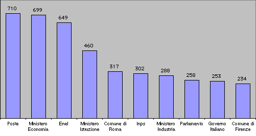 Il sito Internet di Poste Italiane (www.poste.it), realizzato dalla società del gruppo Postecom Spa, si sta affermando come uno dei più interessanti siti della nostra Pubblica amministrazione. Agli inizi dello scorso mese di febbraio è già stata raggiunta la quota di 500mila clienti registrati con la possibilità di effettuare operazioni postali e di Banco Posta. In particolare, a gennaio, sullo stesso sito sono state effettuate più di 200mila operazioni (con un aumento di oltre il 150% rispetto al gennaio dello scorso anno). Entrando nei dettagli, sono stati effettuati: 80mila pagamenti in linea (bollette, bolli auto, canone Rai, multe); 50mila operazioni dispositive su conti correnti postali (bonifici, postagiro, vaglia); 40mila telegrammi via Internet. Non solo, ma il sito delle Poste (si veda il grafico relativo a una indagine Nielsen/Net Ratings) si è classificato al primo posto nella categoria dei servizi di e-Government con oltre 710mila visitatori. E, ancora, la sezione Banco Posta in linea è stata la prima tra i siti della Finanza online.